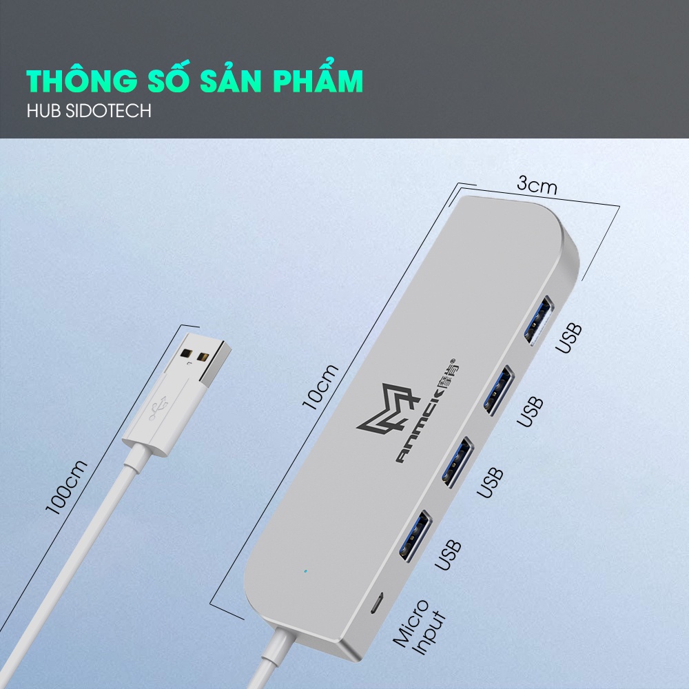 HUB USB 4 cổng SIDOTECH K89 dây dài 1m bộ chia chuyển đổi 4 port mở rộng kết nối tốc độ cao dành cho máy tính laptop