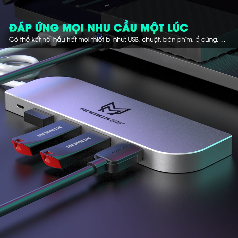 Ưu điểm: BỘ CHIA USB có cổng chuyển dữ liệu, được thiết kế để dễ dàng kết nối với nhiều thiết bị USB như bàn phím, chuột, đầu đọc thẻ nhớ, webcam,... cùng lúc trên máy tính, laptop của bạn. BỘ CHIA USB (USB Hub) Acasis còn có thể được sử dụng như một đầu sạc nhanh, tương thích với các thiết bị như điện thoại, máy tính bảng, camera, loa,... dễ dàng tự động kết nối và tối ưu điện cho thiết bị cần sạc.