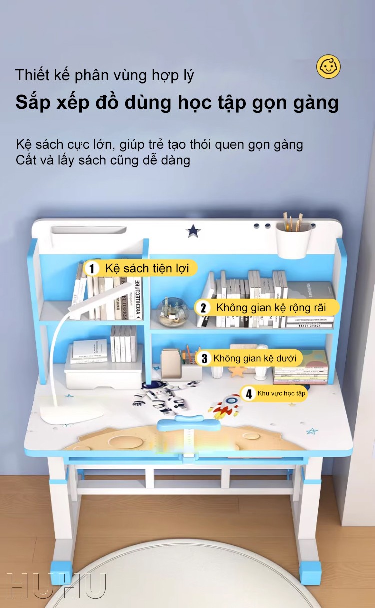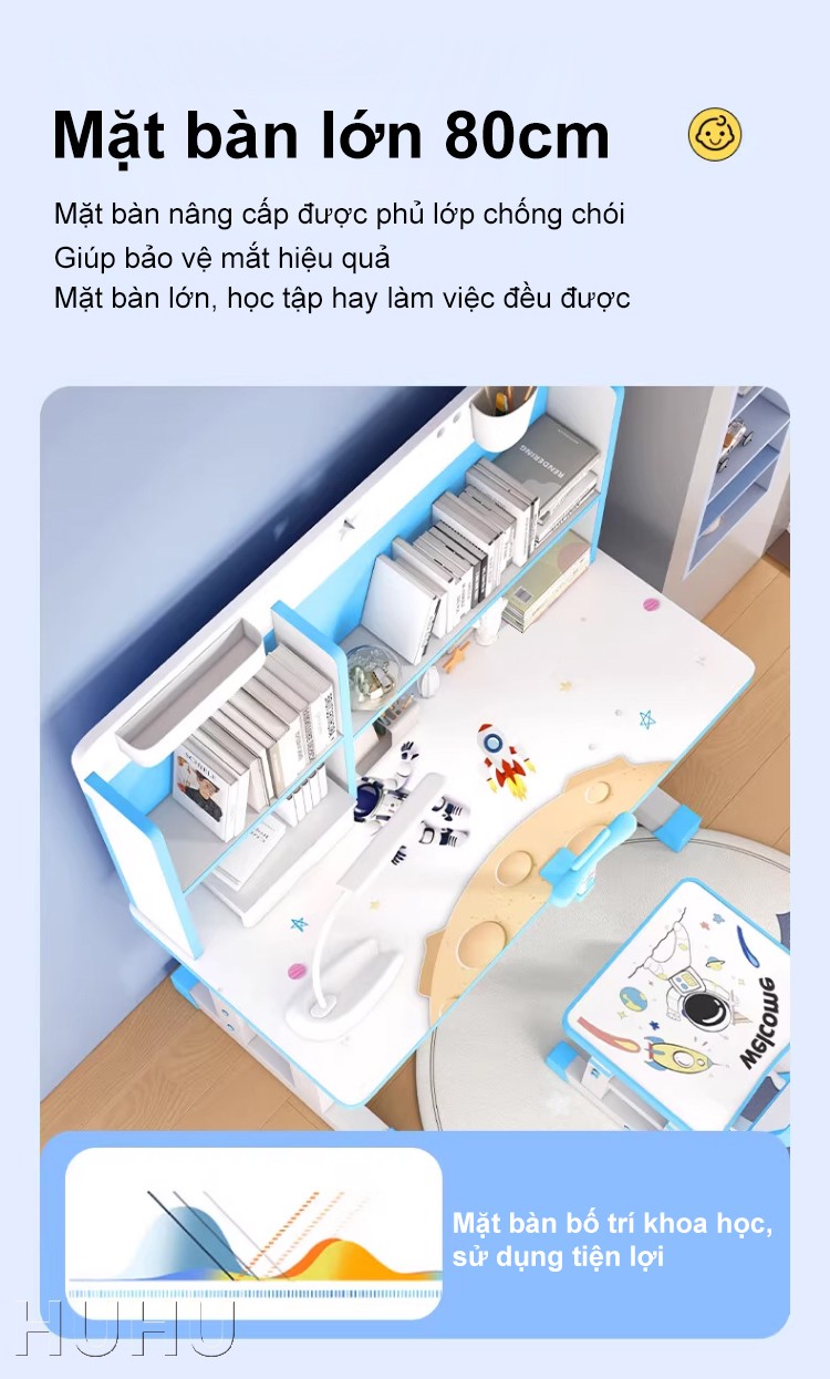 HUHU Bàn học nâng hạ chiều cao chống gù Bảo vệ cột sống dễ điều chỉnh phù hợp mọi độ tuổi