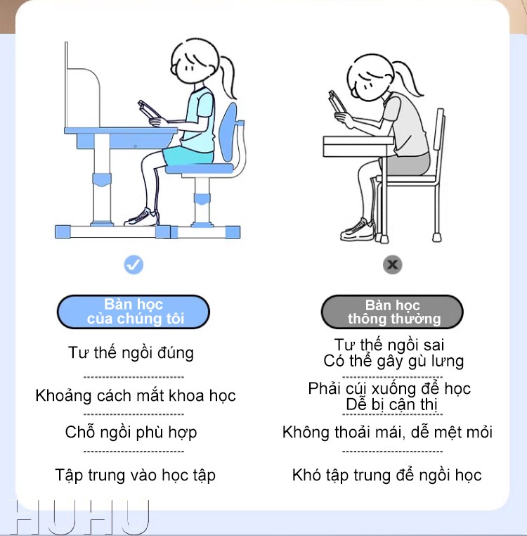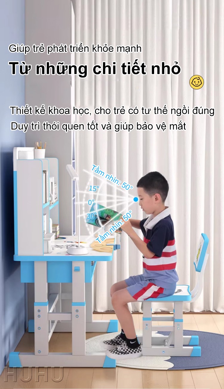 HUHU Bàn học nâng hạ mua bàn tặng ghế chống gù bảo vệ mắt tiện dụng cho mọi lứa tuổi dễ lắp ráp