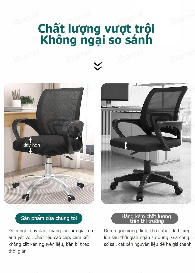 Cảm ơn bạn đã tin tưởng và lựa chọn sản phẩm của chúng tôi! Tại ibarrel, chúng tôi mang đến giải pháp ngồi làm việc thông minh, tối ưu hóa công năng và bảo vệ sức khỏe cho người dùng Việt.