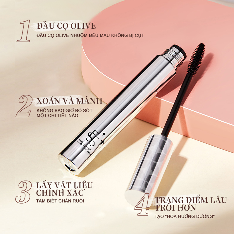 Thiết kế đầu cọ đặc biệt bao bọc đều từng sợi mi tạo hiệu ứng dày và dài.