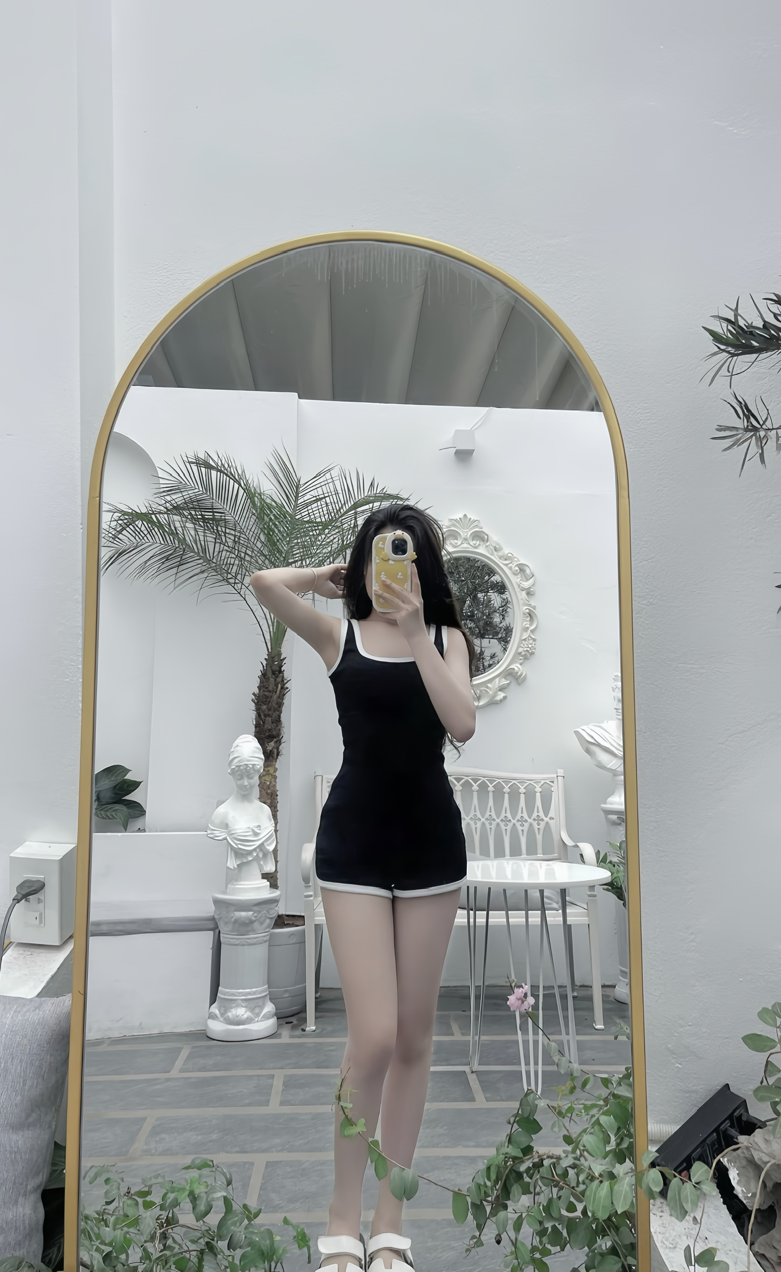 Jumsuit đi biển màu đen phối viền,chuẩn form loại 1, vải thu gân cao cấp YUNA68 JUM001