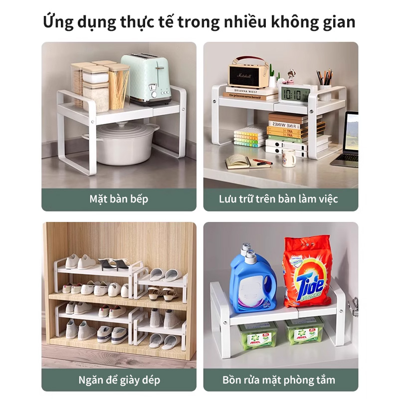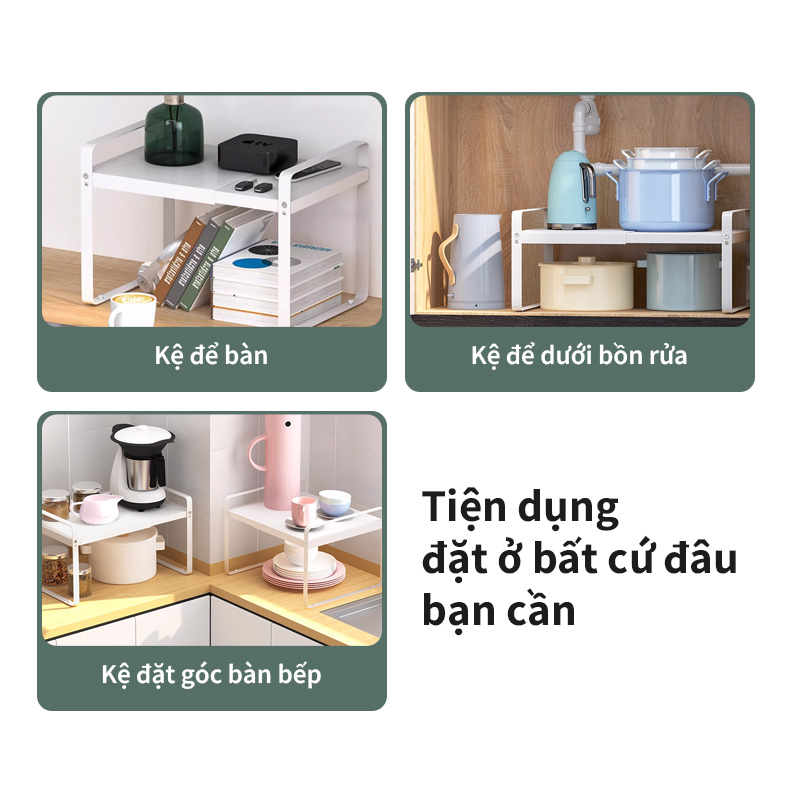 ⭐Công dụng: Kệ treo tủ, kệ mặt bàn, kệ tủ dưới quầy, kệ dưới bồn rửa, mặt bàn học tập, mặt bàn phòng tắm, kệ cây ban công