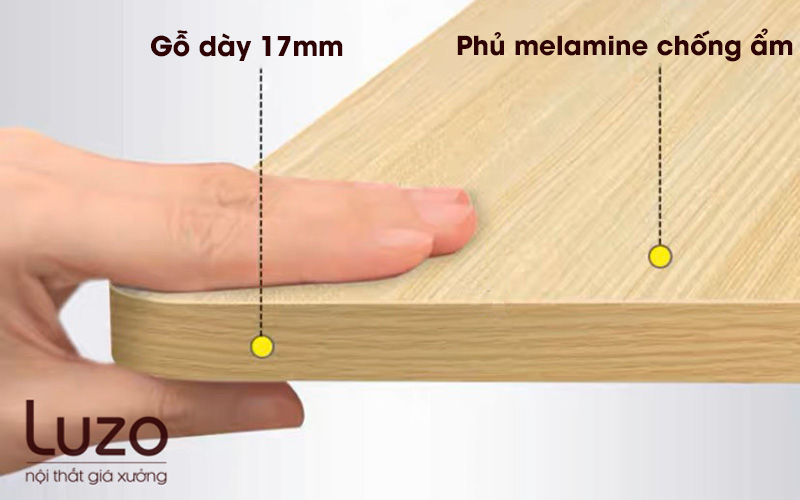 - Chất liệu: Gỗ MDF nhập khẩu Malaysia chống cong vênh, mối mọt. Gỗ dày 1,7cm (thị trường chỉ dày 1.5cm)