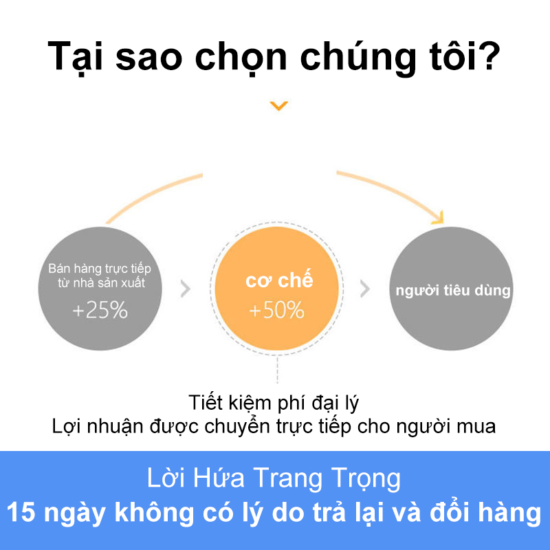 Chúng tôi luôn sẵn sàng bảo vệ quyền và lợi ích hợp lý của khách hàng, chỉ cần hàng hóa chưa qua sử dụng, không bị hư hỏng và có khả năng bán lại, chúng tôi hỗ trợ bạn đổi trả không cần lý do trong vòng 7 ngày.