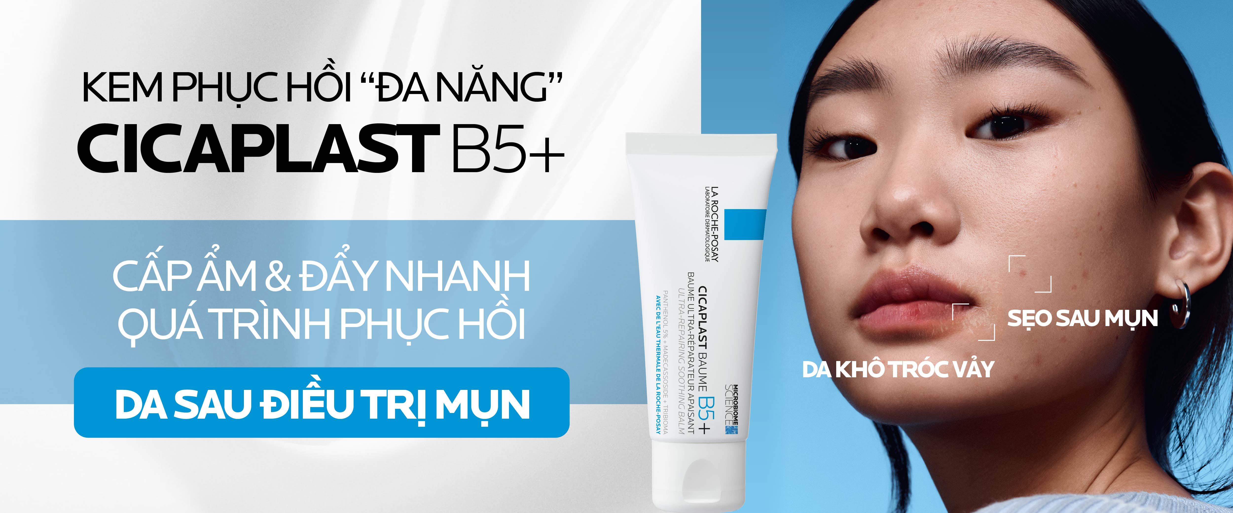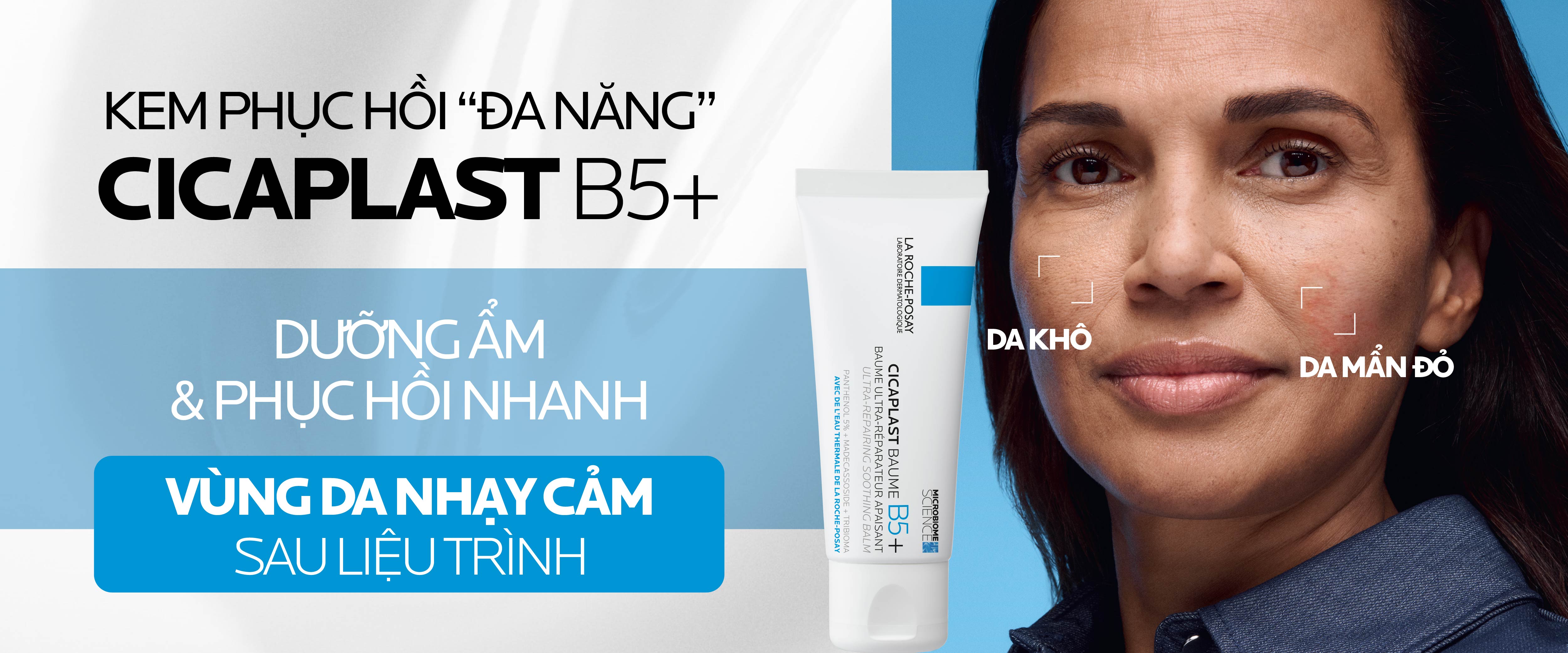 Kem phục hồi đa năng Cicaplast Baume B5+ giúp phục hồi da sau 1 lần sử dụng và bảo vệ hàng rào độ ẩm da với công nghệ cải tiến mới Tribioma và các hoạt chất phục hồi chuyên sâu.