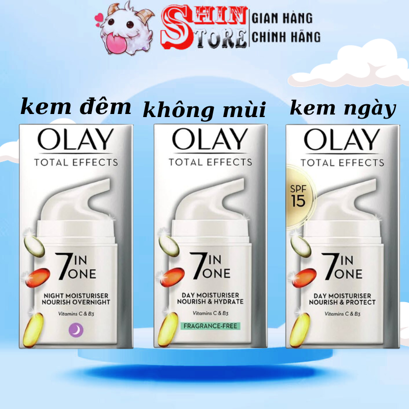Kem Dưỡng Olay Total Effects 7 In 1 Ngày và Đêm dưỡng da, tái tạo và làm đẹp da một cách tối ưu, chống lão hóa 50ml OLAY Total Effects 7 in 1 là kem dưỡng da giúp cung cấp dưỡng chất và độ ẩm cần thiết cho da, đồng thời chống lại 7 dấu hiệu lão hóa: nếp nhăn và vết chân chim, da thô ráp, da không đều màu, da sạm màu, lỗ chân lông lớn, vết đồi mồi, da khô.