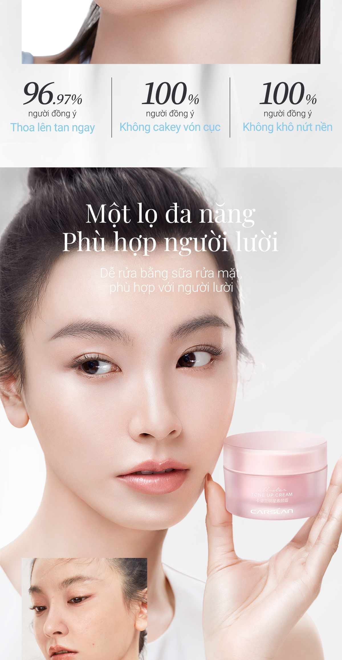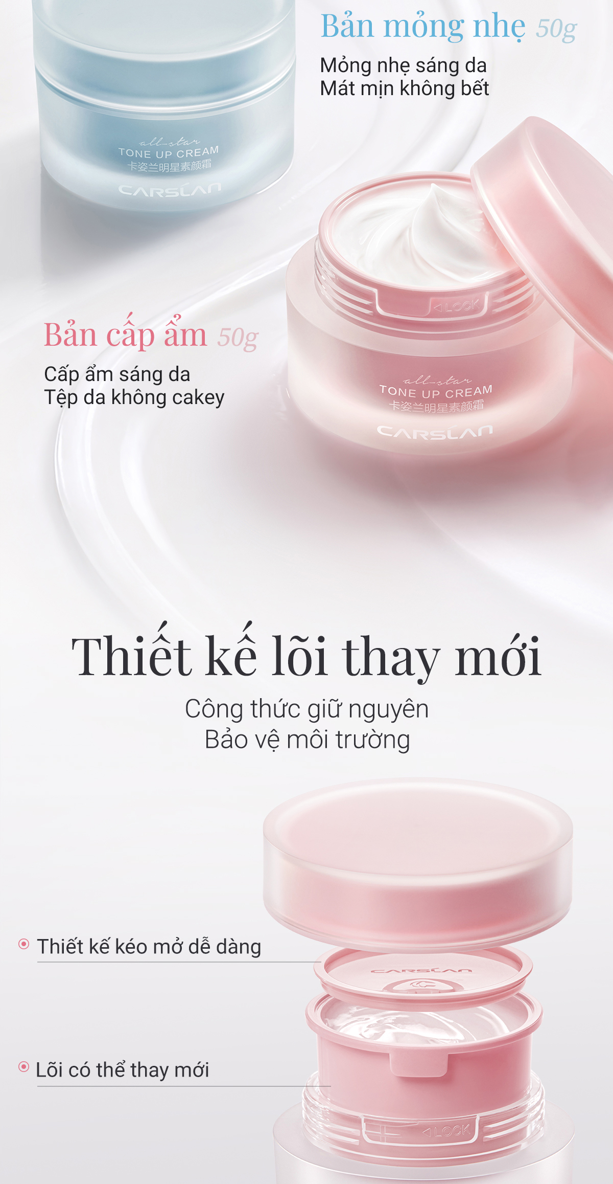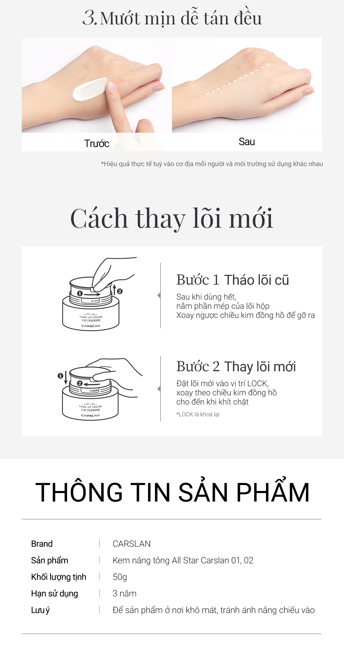 Kem nâng tông da Carslan kem lười trang điểm Kem lót che khuyết điểm hiệu quả Makeup nâng tông 50g