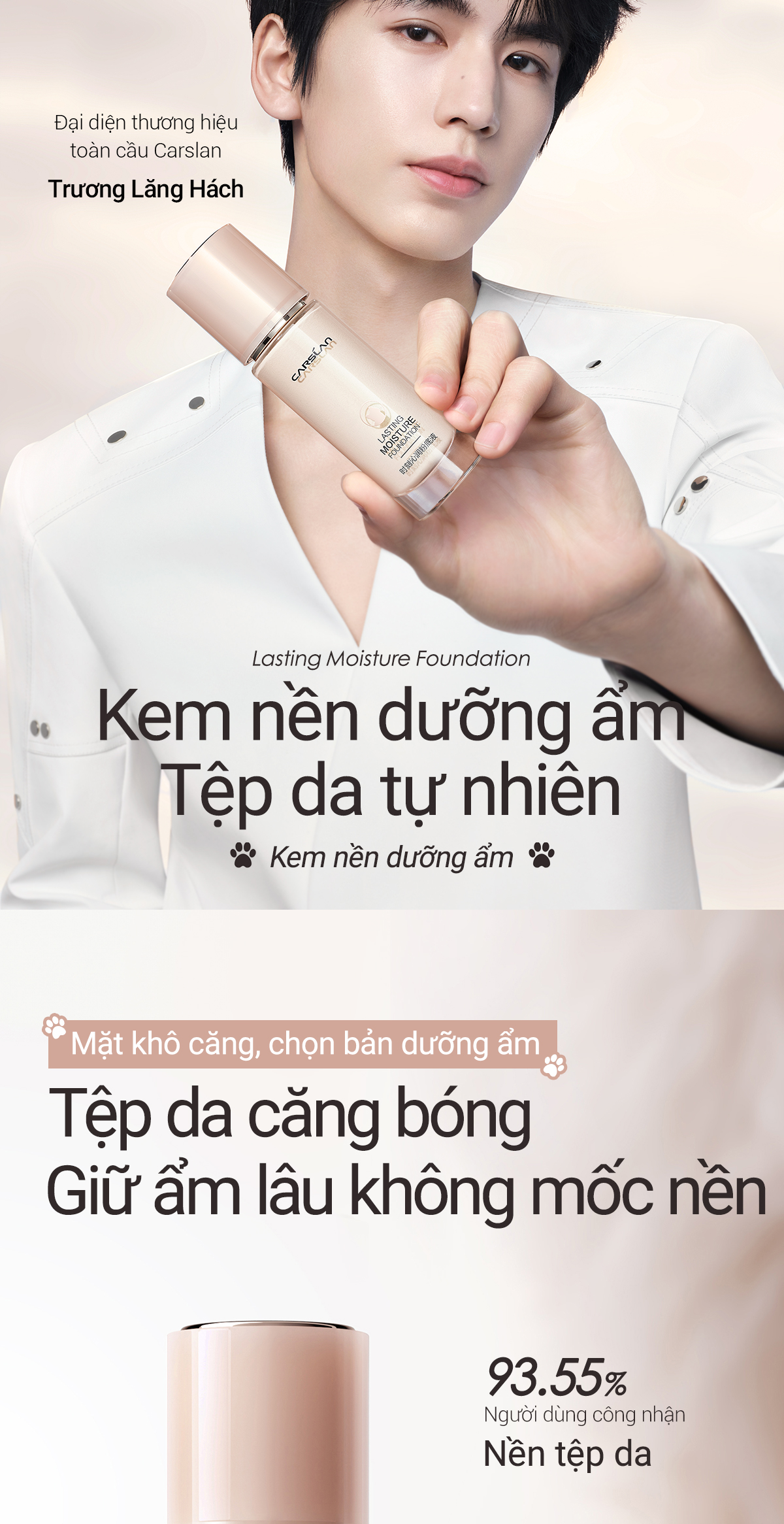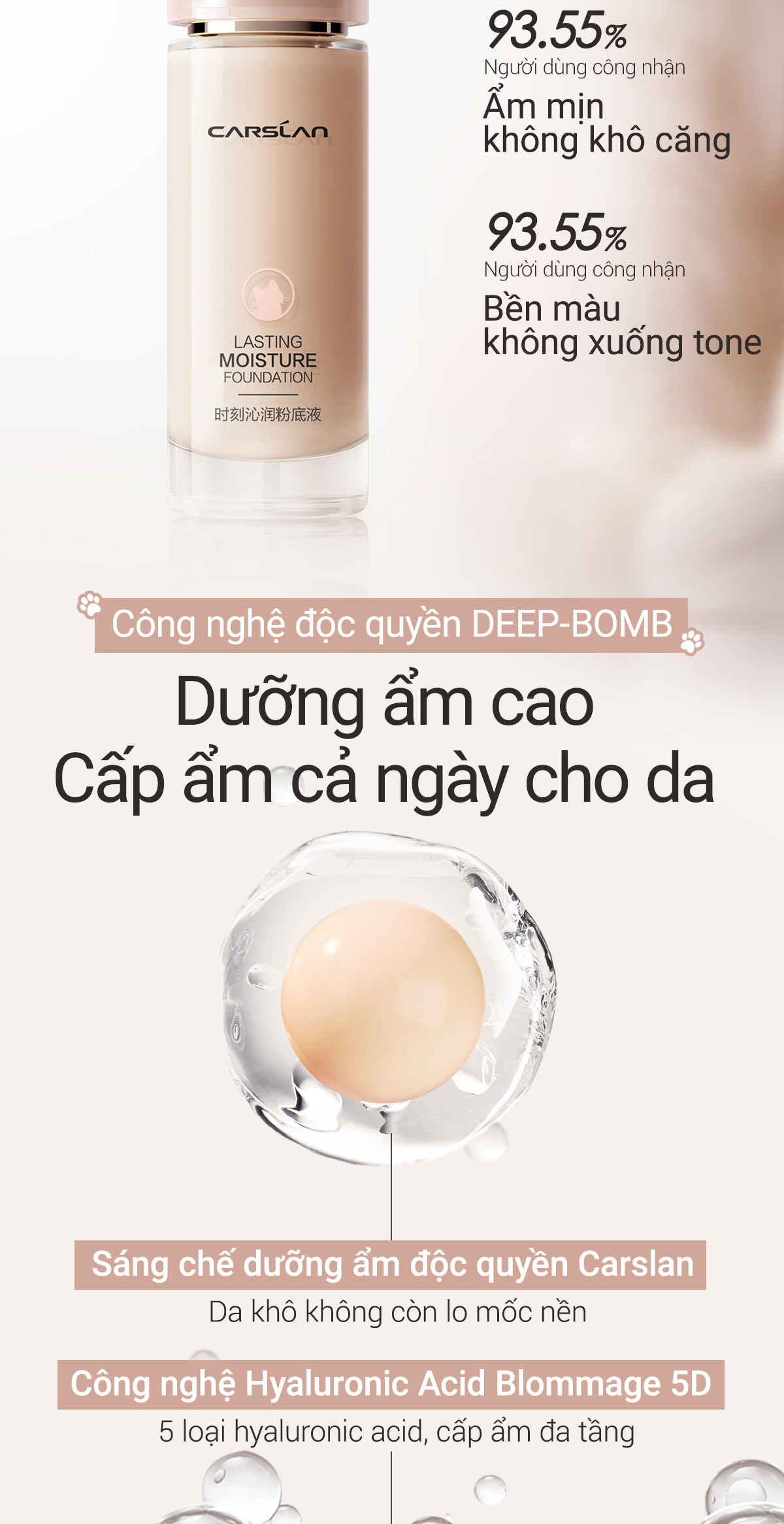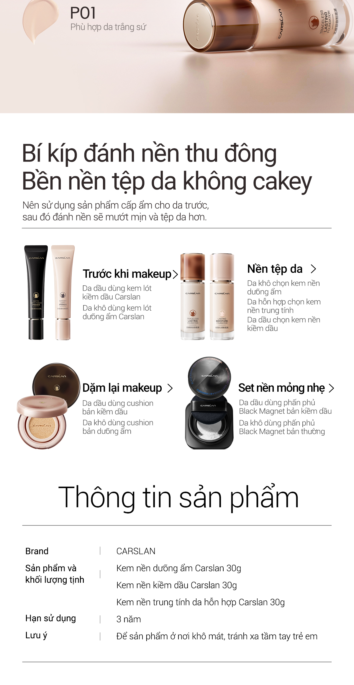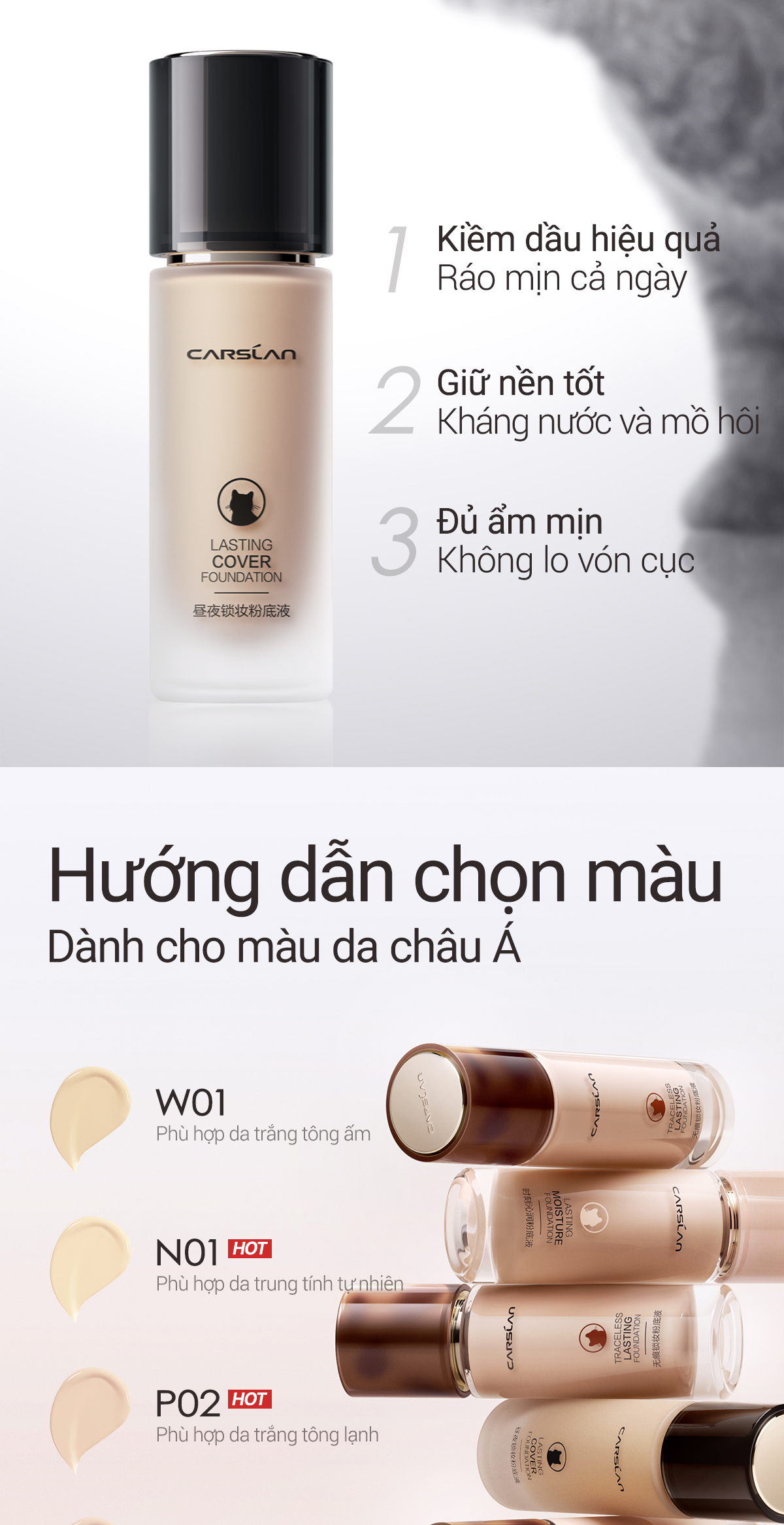 Kem Nền Carslan Dạng Lỏng Kiểm Soát Dầu Lâu Trôi Chống Thấm Nước Suốt 24h 30g