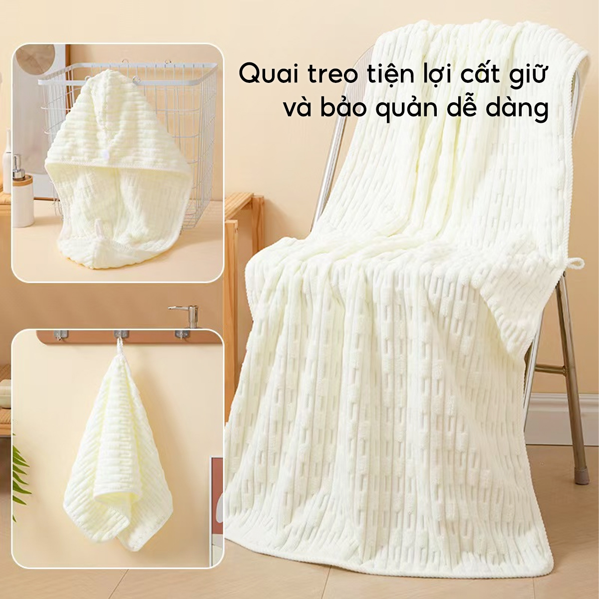 - Dễ giặt, nhanh khô: Giúp tiết kiệm thời gian chăm sóc khăn.