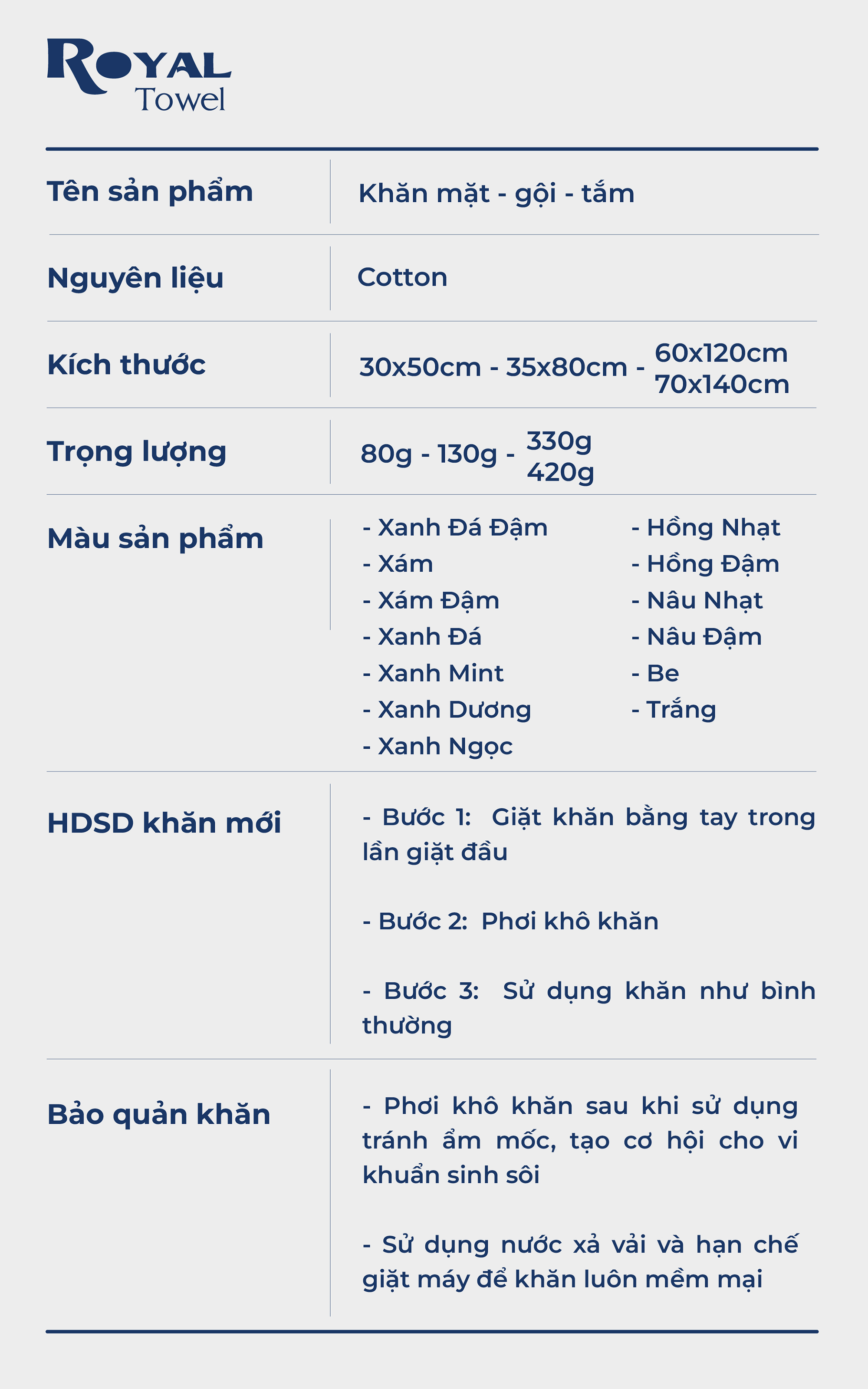 Hướng dẫn bảo quản sản phẩm Khăn tắm gội mặt cao cấp Royal: