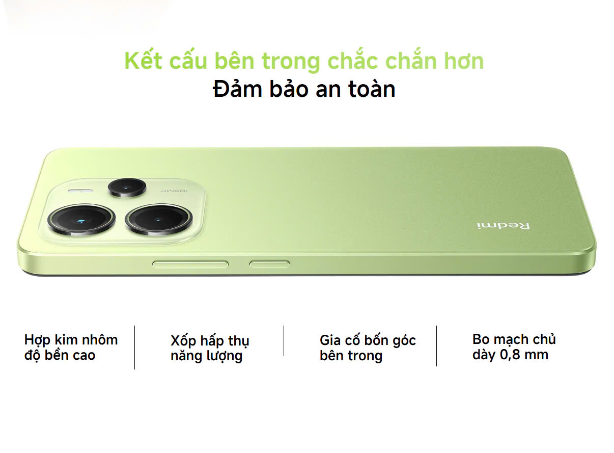 - Xiaomi Redmi Note 14 128GB đã khẳng định vị thế của mình với thiết kế đột phá, mang đến cho người dùng một trải nghiệm thị giác hoàn toàn mới mẻ. Sản phẩm sở hữu hình dáng vuông vức với các cạnh viền khỏe khoắn và bề mặt lưng phẳng. Bốn góc máy được bo tròn tinh tế, tạo nên sự hòa quyện giữa vẻ đẹp cứng cáp và sự mềm mại.