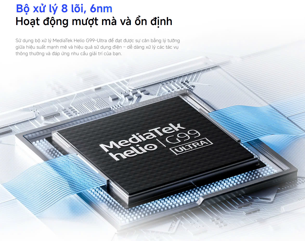 - Sở hữu MediaTek Helio G99-Ultra giúp giải quyết mọi tác vụ một cách mượt mà.