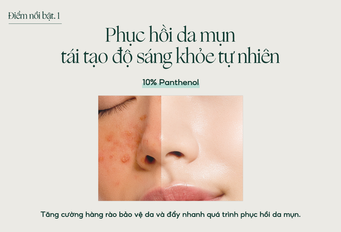 - 10% Panthenol – tăng cường hàng rào bảo vệ, phục hồi da tổn thương.
