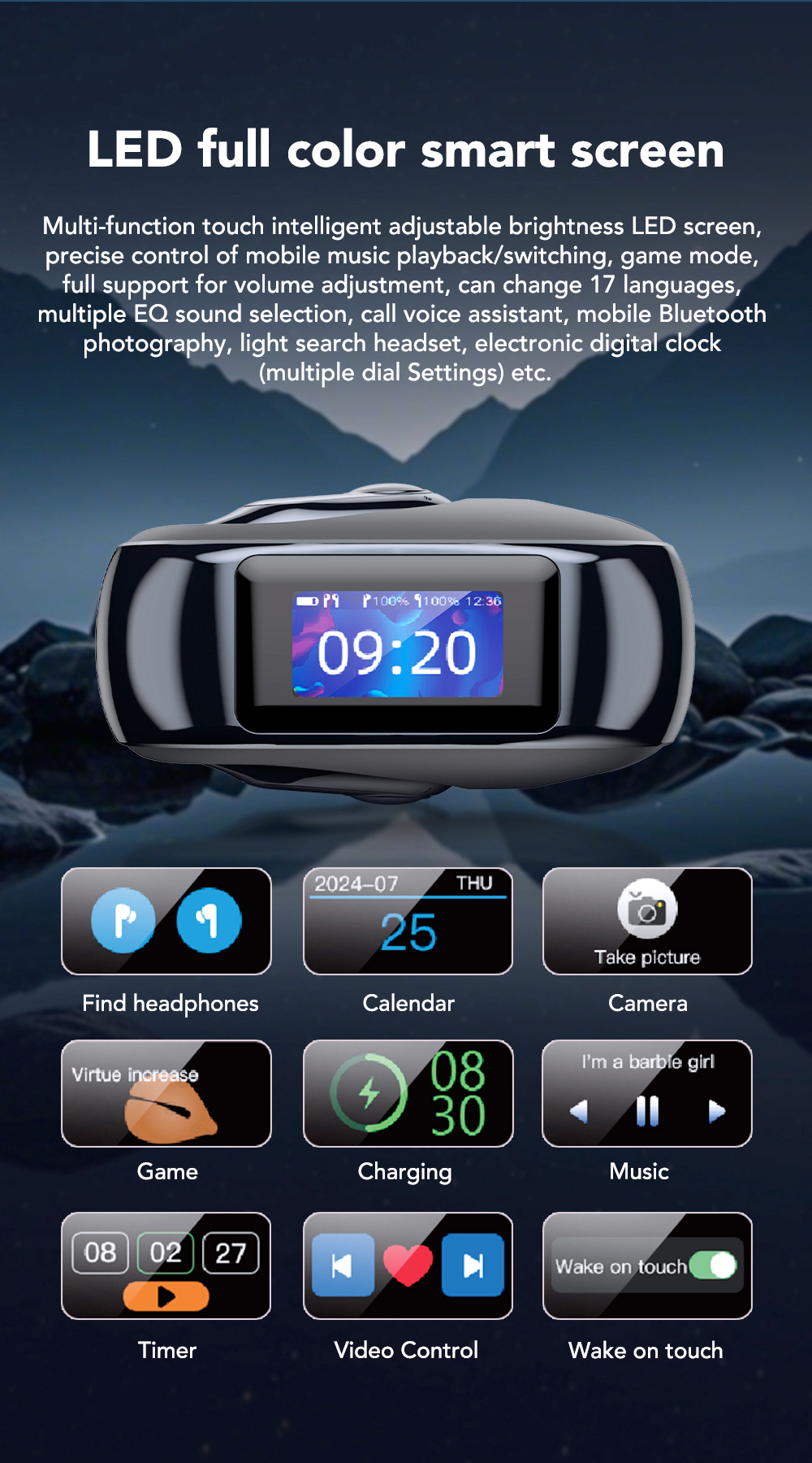Được trang bị màn hình thông minh LED đủ màu, nó có thể điều khiển trực tiếp nhạc, hiển thị nguồn, chuyển chế độ chơi game, đánh thức trợ lý giọng nói, v.v.