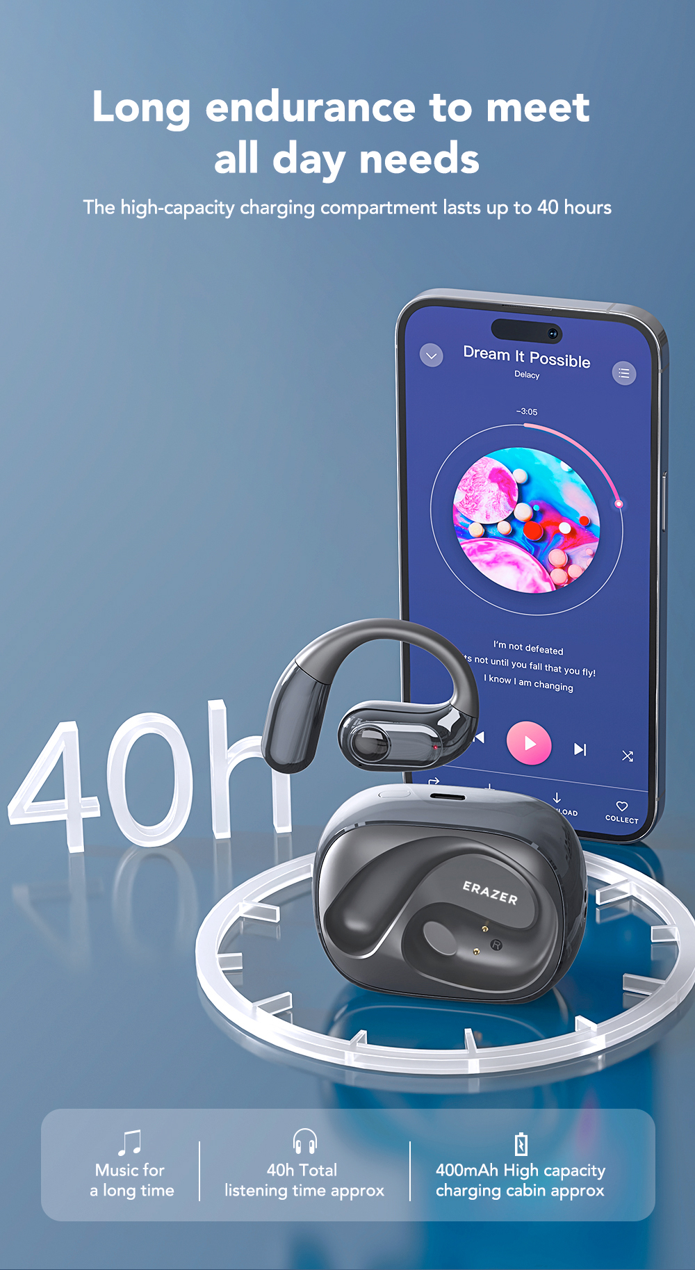 Thời lượng pin: lên đến 40 giờ, đáp ứng nhu cầu sử dụng cả ngày.