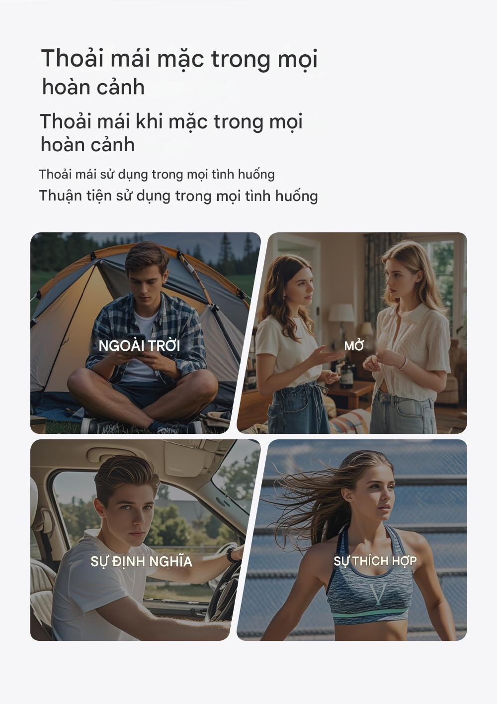 Cảm giác mềm mại và thoải mái, giữ khô ráo và không bị dính khi đổ mồ hôi. Thoải mái sử dụng trong mọi tình huống, có thể sử dụng trong mọi hoàn cảnh.