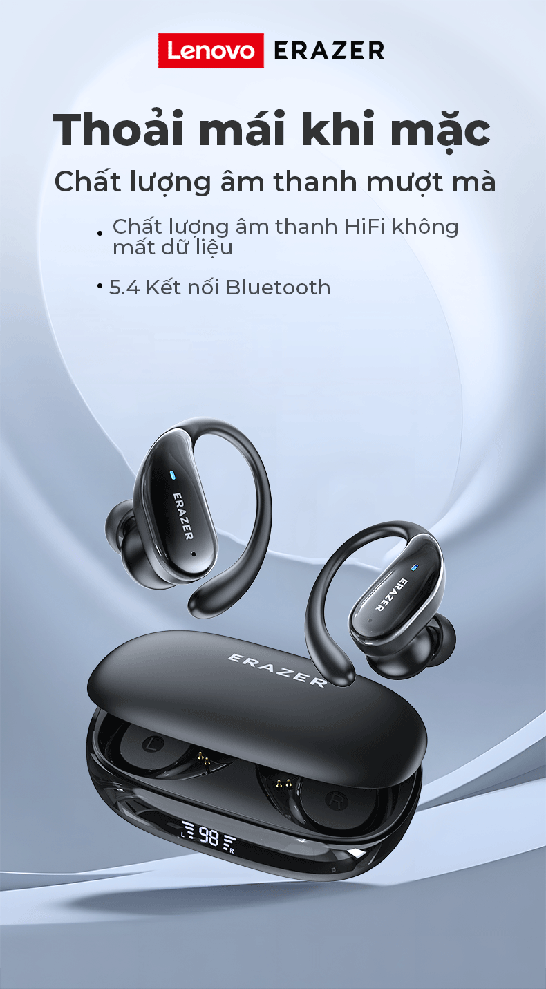 Lenovo ERAZER XT80 Pro Tai Nghe Phiên Dịch Thể Thao Phiên Dịch AI Thông Minh Bluetooth 5.4 TWS Âm Thanh HIFI Micro Khử Ồn ANC Chống Nước, Đèn LED Thiết Kế Độ Trễ Thấp
