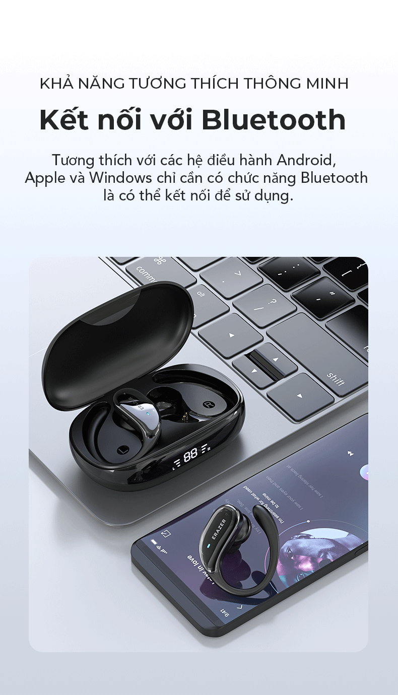 1. Bluetooth v5.4, hỗ trợ hầu hết các thiết bị Bluetooth, tiêu thụ điện năng thấp hơn