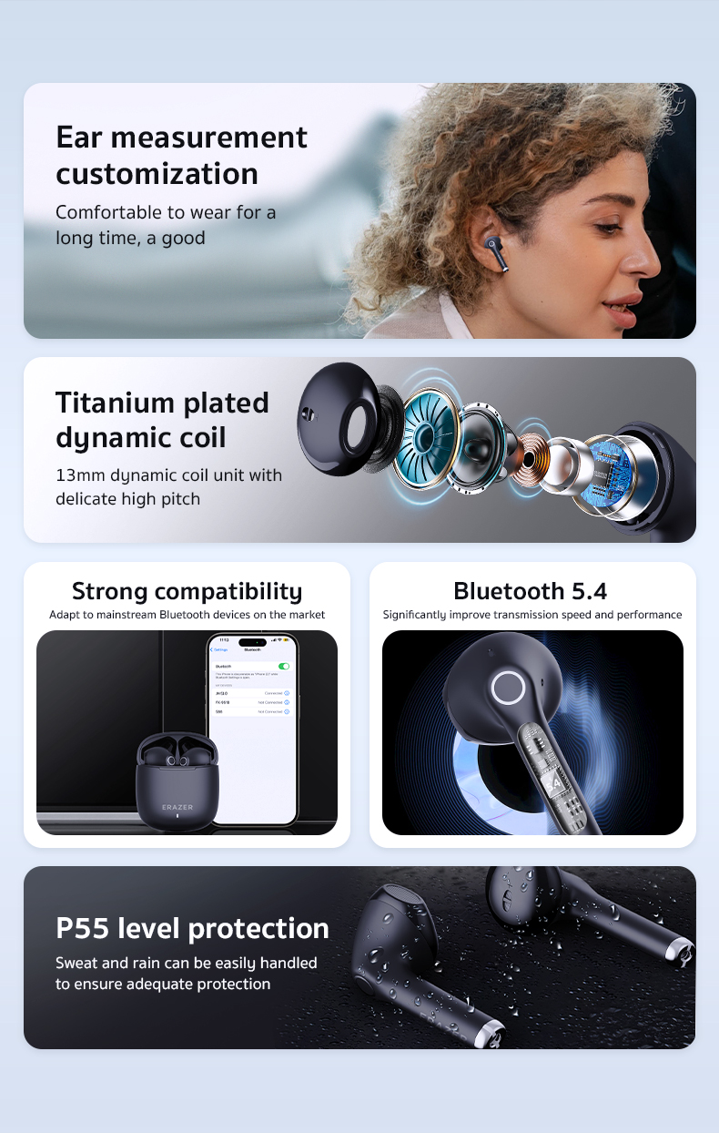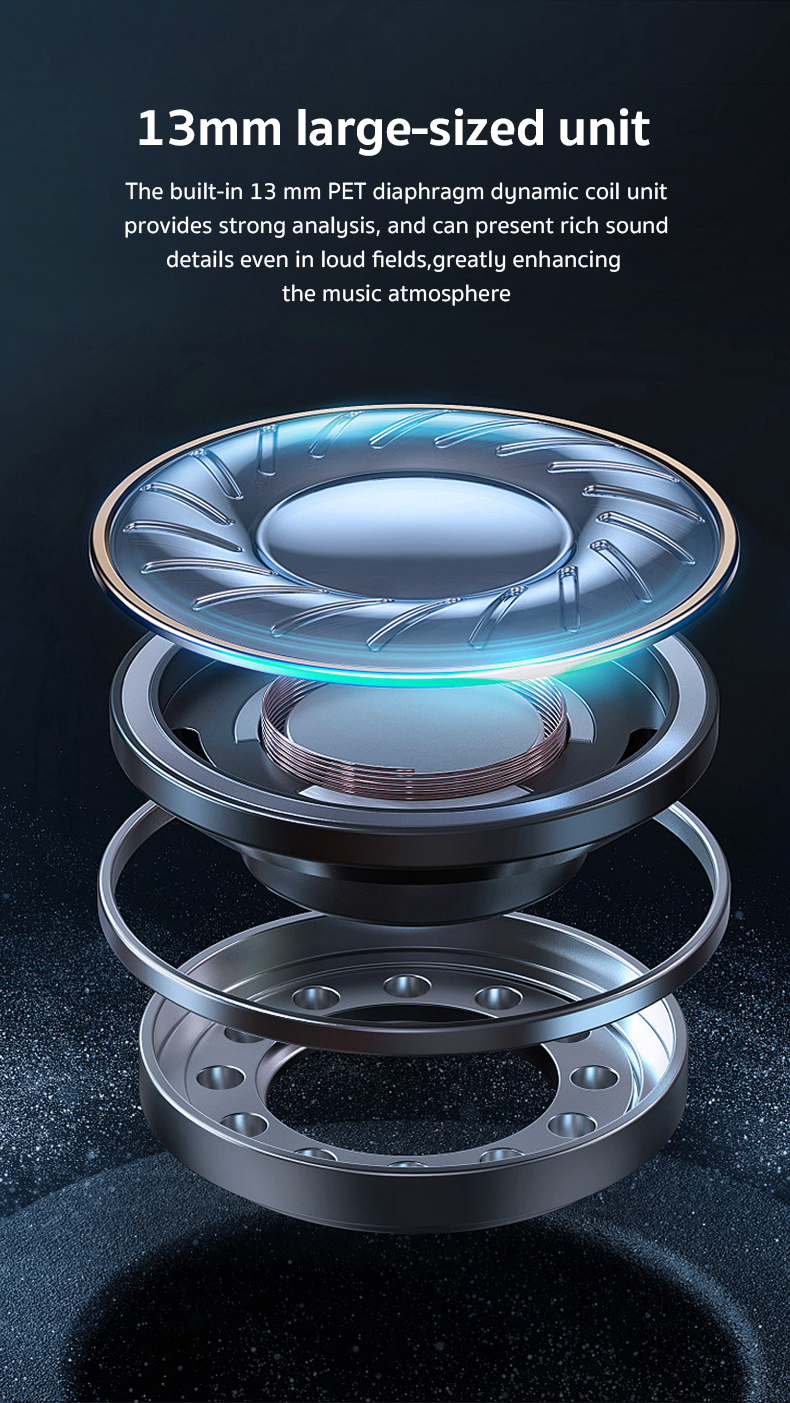 Màng chắn mạ titan composite polyme, cuộn dây động 13mm với âm thanh cao độ tinh tế và âm thanh cao độ thấp phong phú.