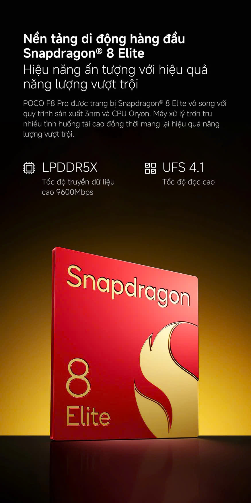 - Chuẩn bộ nhớ LPDDR5X + UFS 4.1