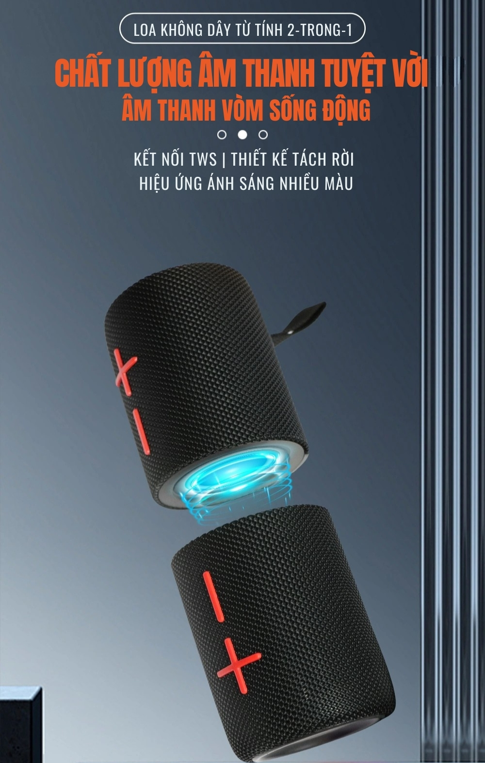 ● 2 in 1 – Loa chia đôi di động với tính năng hút nam châm