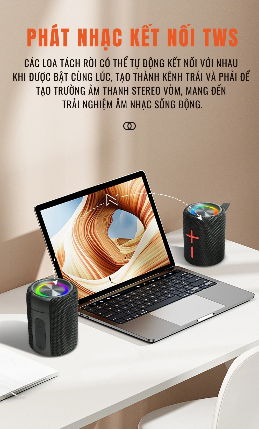 ● TWS 2 loa – Âm thanh stereo