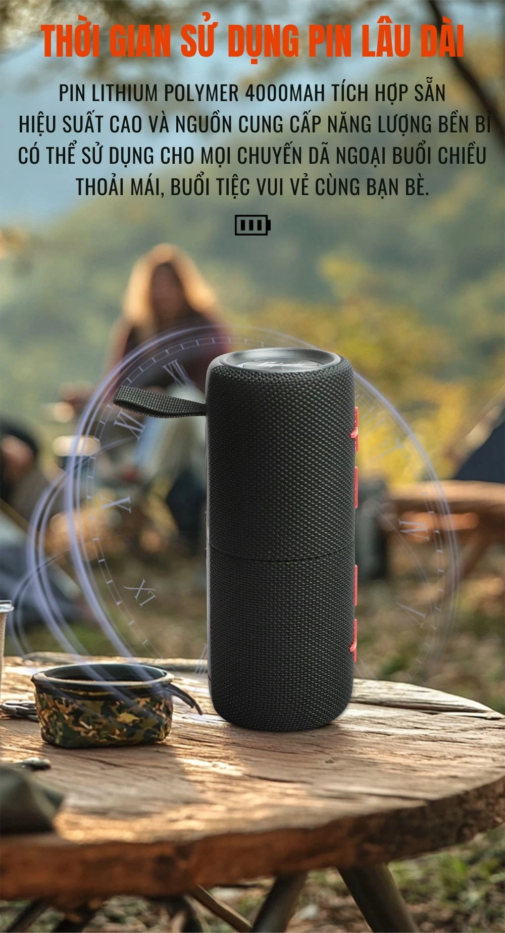 ● Phát 3-6 giờ, sạc ≤3 giờ