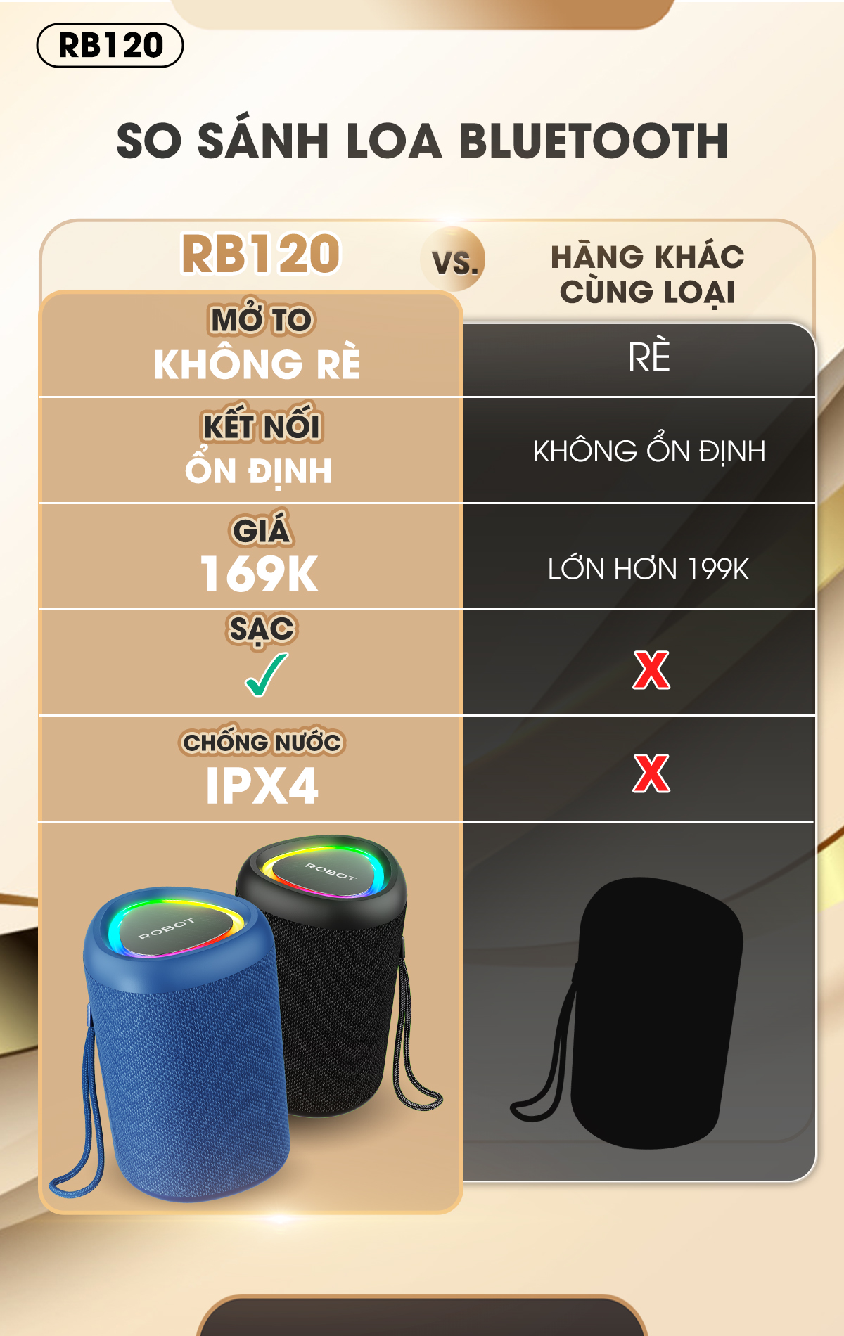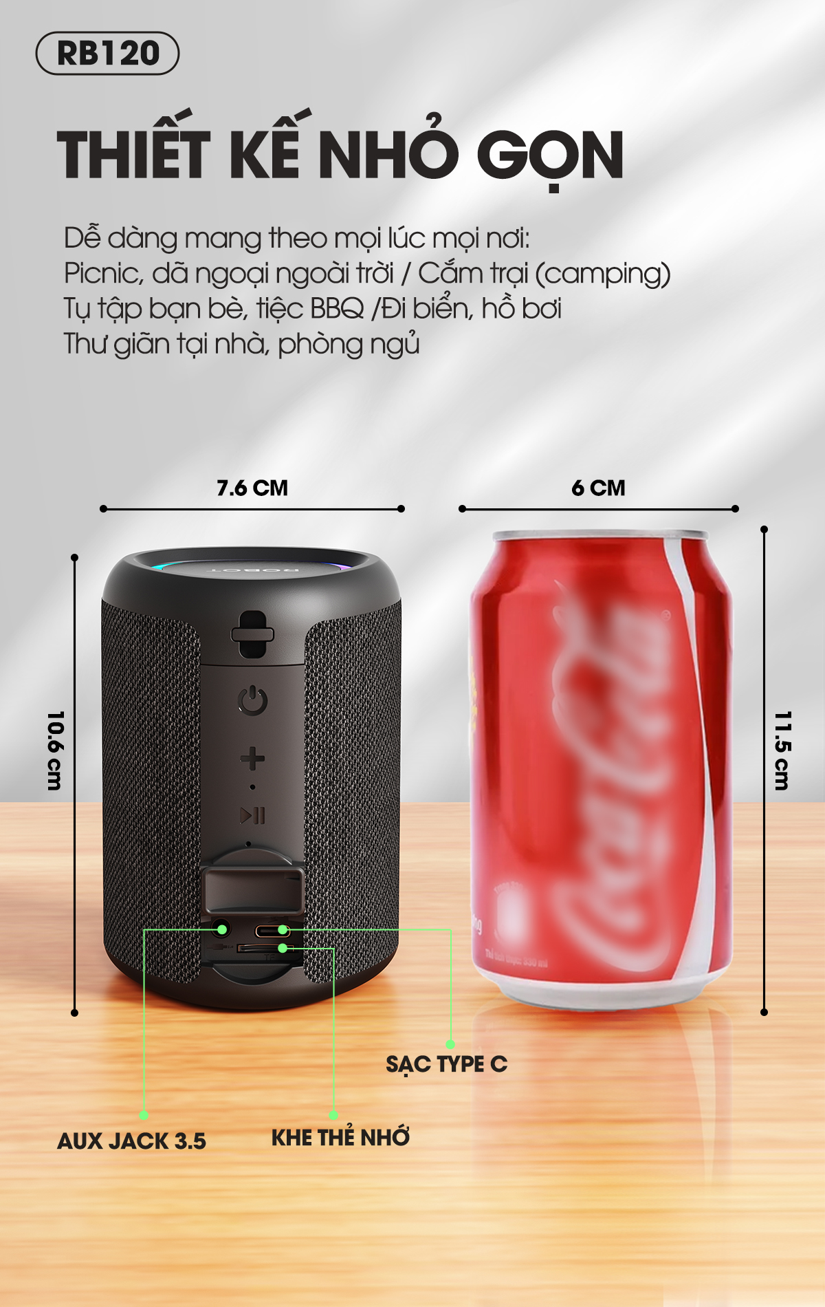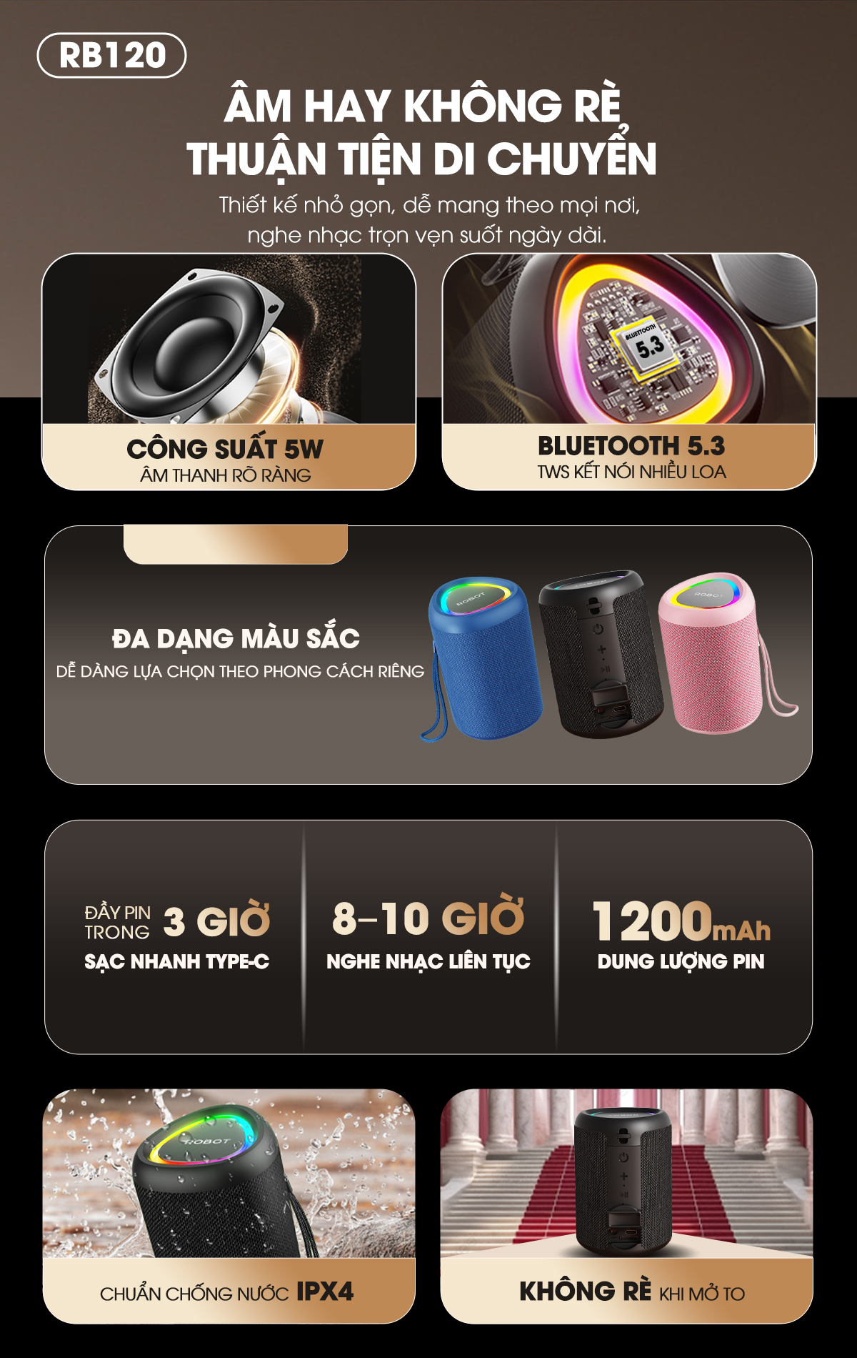 Loa Bluetooth Mini ROBOT RB120 Công Suất 5W Đèn Led RGB Hỗ Trợ Kết Nối Thẻ Nhớ