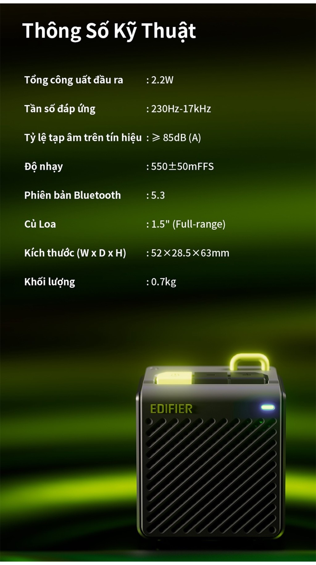Loa Bluetooth Mini V5.3 Wireless EDIFIER MP85 | Sử Dụng Đến 8H | Thiết Kế Nhỏ Gọn | Bảo Hành 12 Tháng