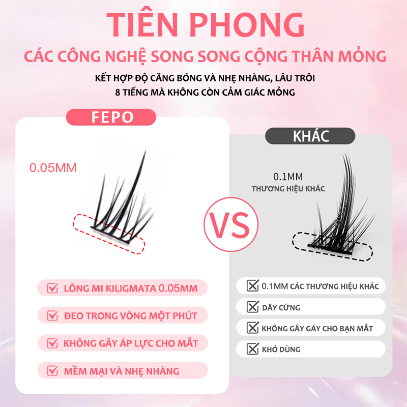 Lông mi giả nhiều loại 20 hàng FEPO mi lông thỏ tự nhiên mi giả tách sợi có thể tái sử dụng 12mm