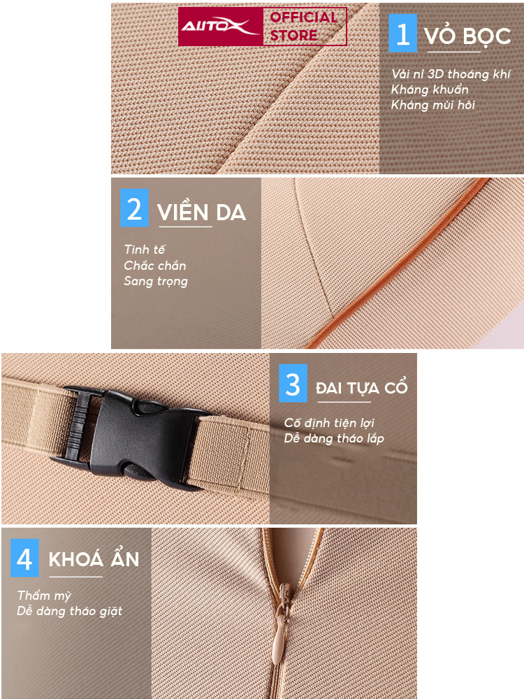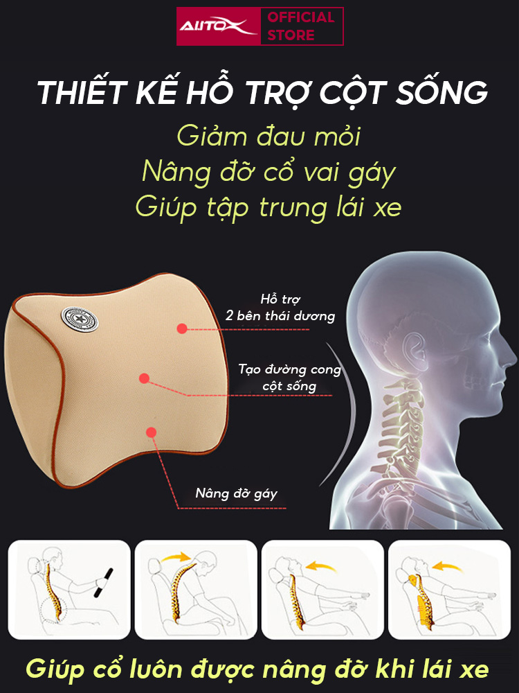 Gối tựa đầu ô tô cao su non AutoX êm mềm thoải mái giảm đau mỏi cổ vai gáy
