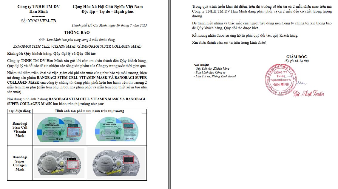 Sản phẩm là mặt nạ BANOBAGI quý khách mua hàng lưu ý phân biệt với mặt nạ BNBG để tránh nhầm lẫn ạ. Cảm ơn!
