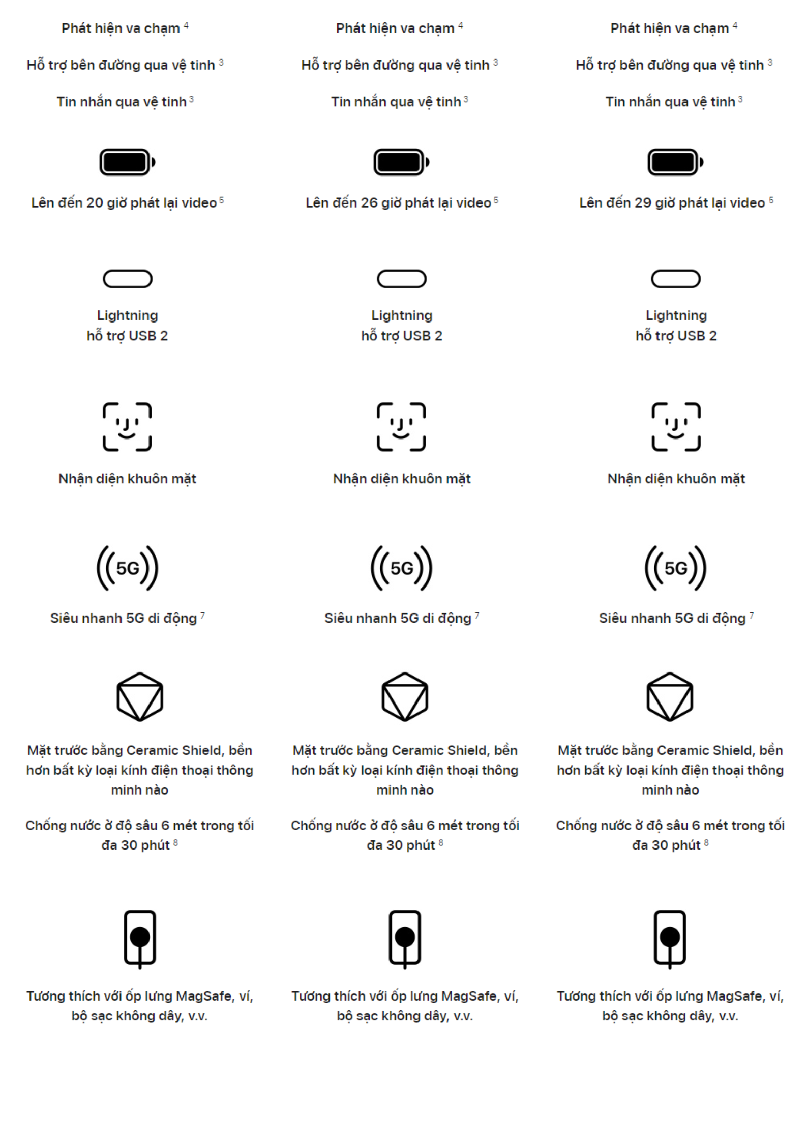 Chức năng sạc: Sạc nhanh có dây 20W, sạc MagSafe 15W, sạc không dây chuẩn Qi 7.5W