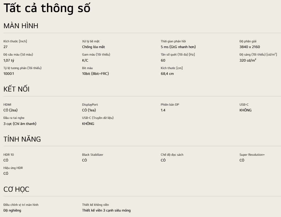 Màn hình LG 27UP600K-W (27Inch/ 4K (3840 x 2160)/ 5ms/ 400cd/m2/ IPS)