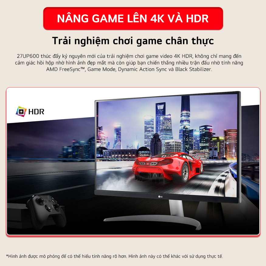 27UP600 thúc đẩy kỷ nguyên mới của trải nghiệm chơi game video 4K HDR, không chỉ mang đến cảm giác hồi hộp nhờ hình ảnh đẹp mắt mà còn giúp bạn chiến thắng nhiều trận đấu nhờ tính năng AMD FreeSync™, Game Mode, Dynamic Action Sync và Black Stabilizer.