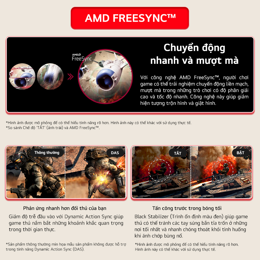 Với công nghệ AMD FreeSync™, người chơi game có thể trải nghiệm chuyển động liền mạch, mượt mà trong những trò chơi có độ phân giải cao và tốc độ nhanh. Công nghệ này giúp giảm hiện tượng trộn hình và giật hình.