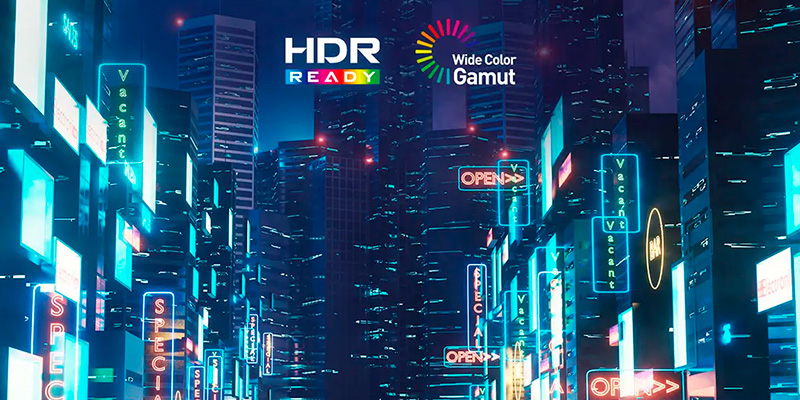 Màn hình đạt chuẩn HDR Ready, giúp nâng cao chất lượng hiển thị trong các nội dung HDR như game và phim ảnh. Với độ sáng 300 nits (SDR), độ tương phản tĩnh 1000:1 và tương phản động 100 triệu:1, thể hiện tốt các vùng sáng và vùng tối, tạo chiều sâu và độ nổi khối rõ rệt.