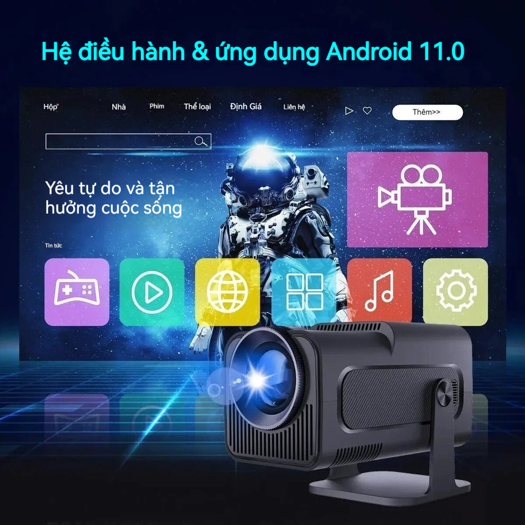 - Tích hợp hệ điều hành Androi ngay trên máy, chính vì vậy bạn có thể sử dụng CH-play và biến chiếc máy chiếu trở thành 1 chiếc Smart TV chất lượng cao.
