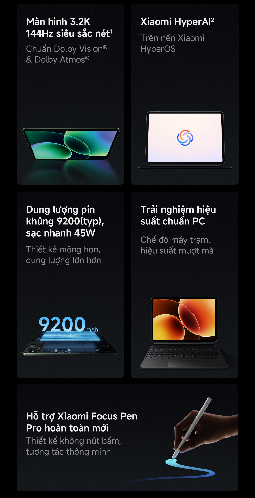 Máy tính bảng Xiaomi Pad 8 (8+128GB|8+256GB)| Pin 9200mAh (typ)| Màn hình 3.2K 144Hz| Vi xử lý Snapdragon 8s Gen 4