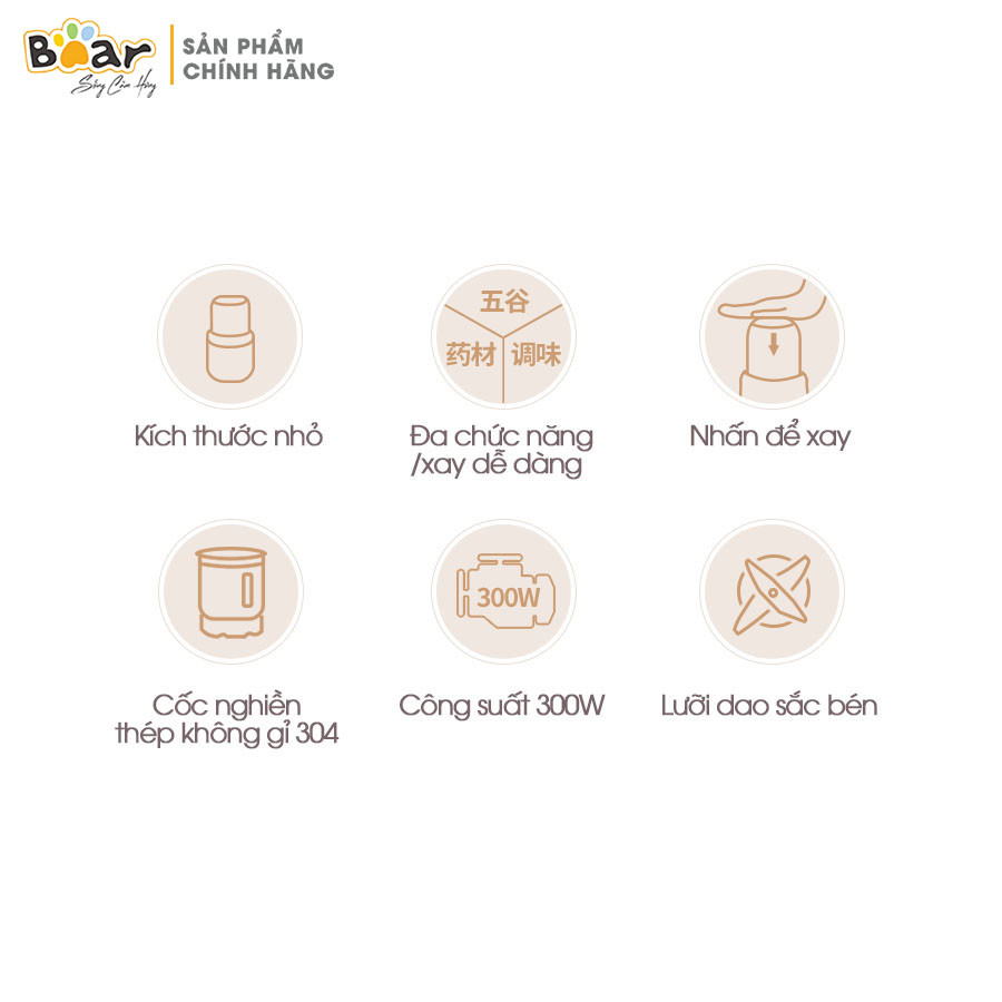 Máy xay bột khô đa năng BEAR FSJ-A03D1S, 300W,4 lưỡi inox, xay cà phê, tiêu, ớt, ngũ cốc,BH 18 tháng