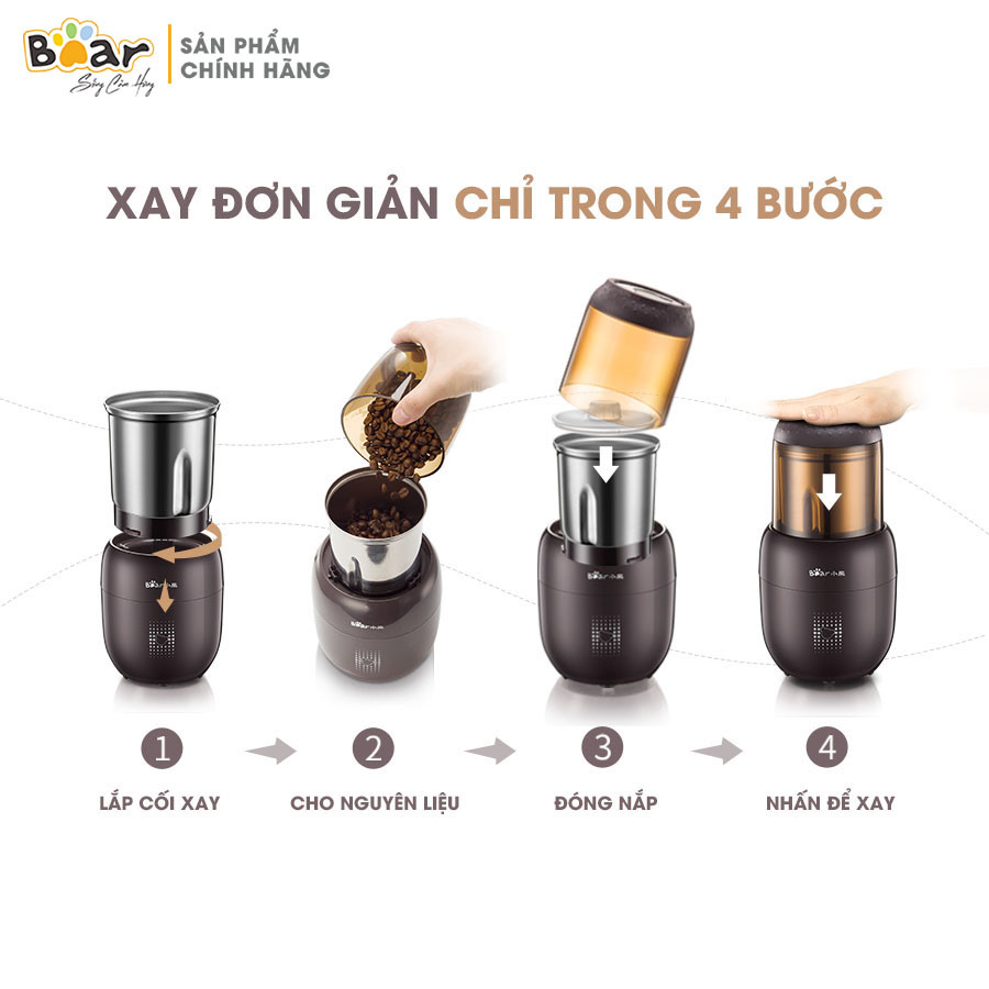 Máy xay hạt khô cầm tay Bear FSJ-A03D1, 300W, Xay nhuyễn hạt cà phê, tiêu, thảo mộc, BH 18 Tháng
