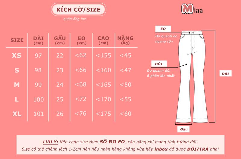 - Tên sản phẩm: Quần Jeans Ống Loe Nữ MIAA Cạp Cao Ôm Eo Tôn Dáng