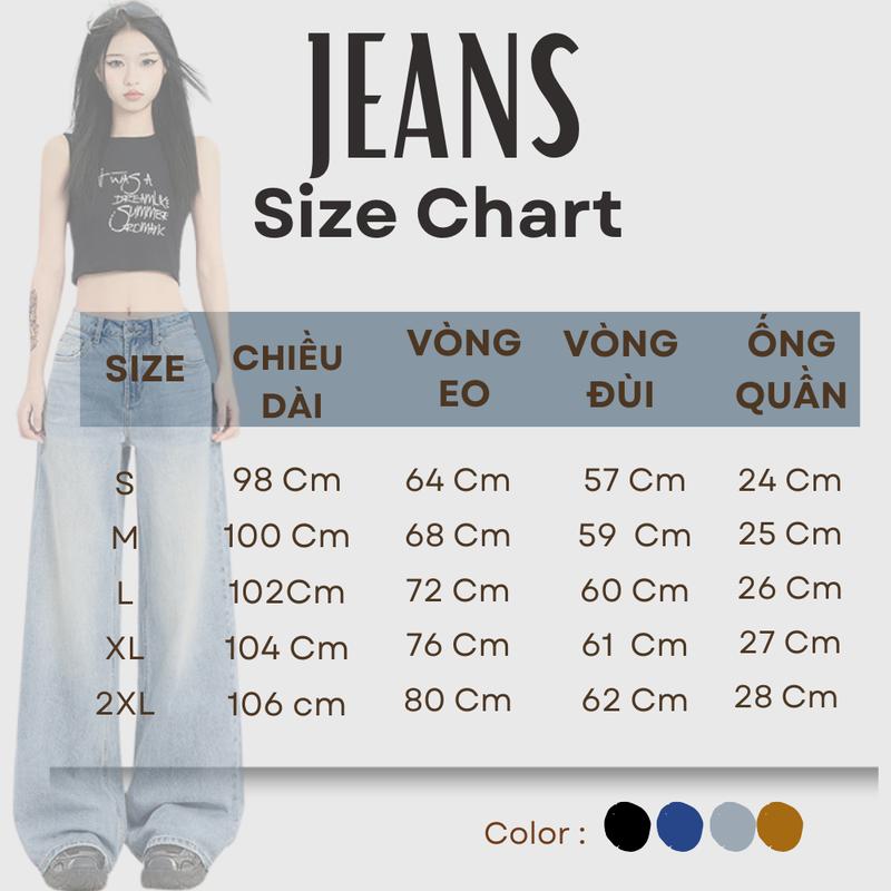 Quần jean nữ ống rộng suông wash màu retro MIAA, quần bò ống rộng lưng cao siêu cá tính