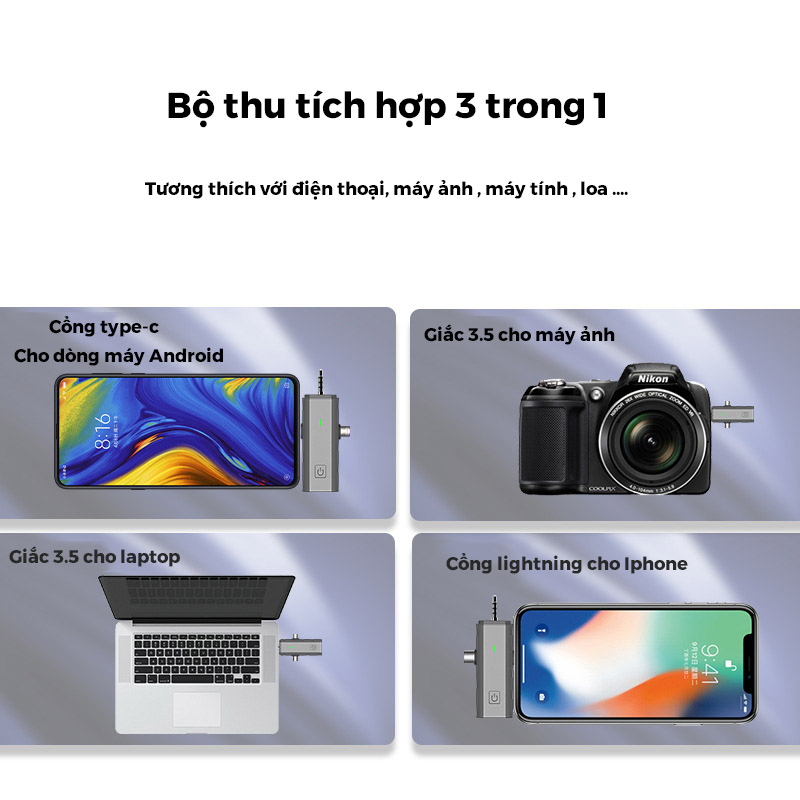 + Sản phẩm thiết kế đa năng gồm 3 cổng thu kết hợp trên 1 bộ mic