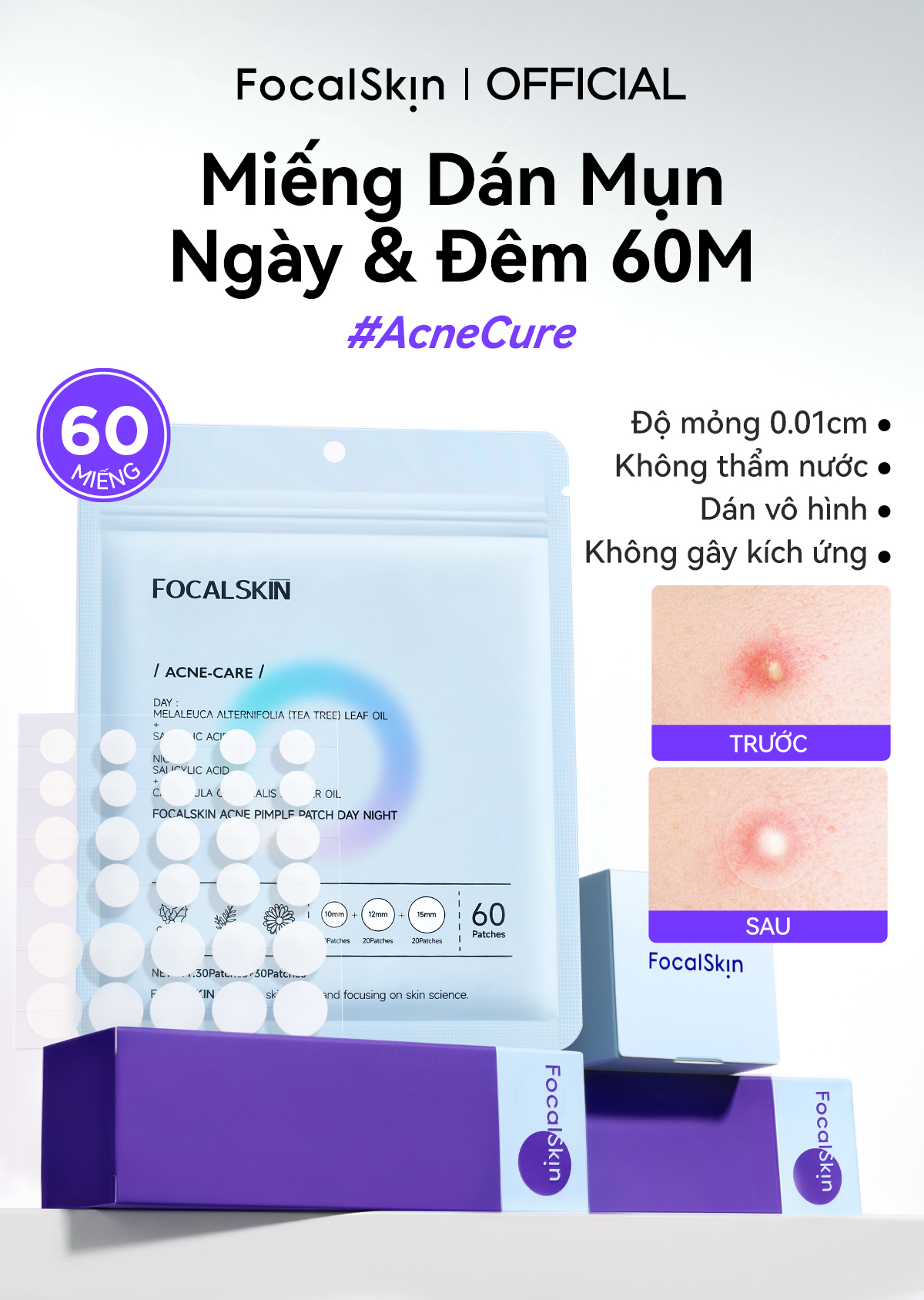 Miếng Dán Mụn BHA FOCALSKIN Siêu Mỏng 0.01cm Hút Mụn Sạch + Giảm Sưng + Che Mụn Makeup 60M Ngày Đêm