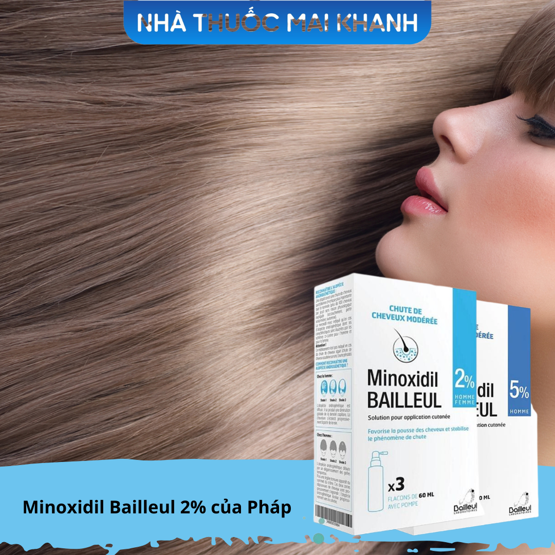 Minoxidil Bailleul Xịt Mọc Tóc 2% Và 5% Ngăn Ngừa Rụng Tóc, Giúp Mọc Tóc 60ml Pháp