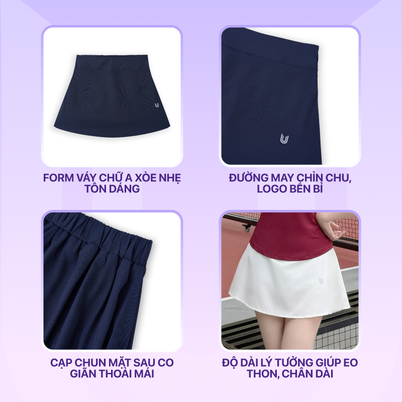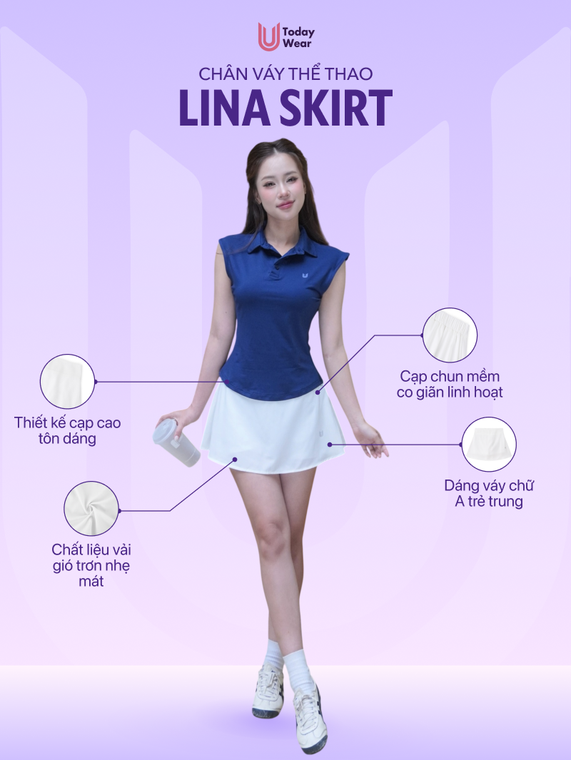 Chân váy ngắn thể thao Lina Skirt Today U Wear dáng chữ A cho nữ chơi cầu lông tennis chạy bộ, pickleball...