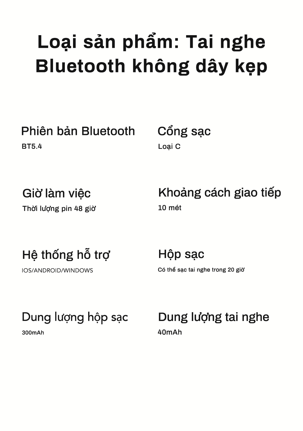 Loại sản phẩm: Tai nghe Bluetooth không dây dạng kẹp tai